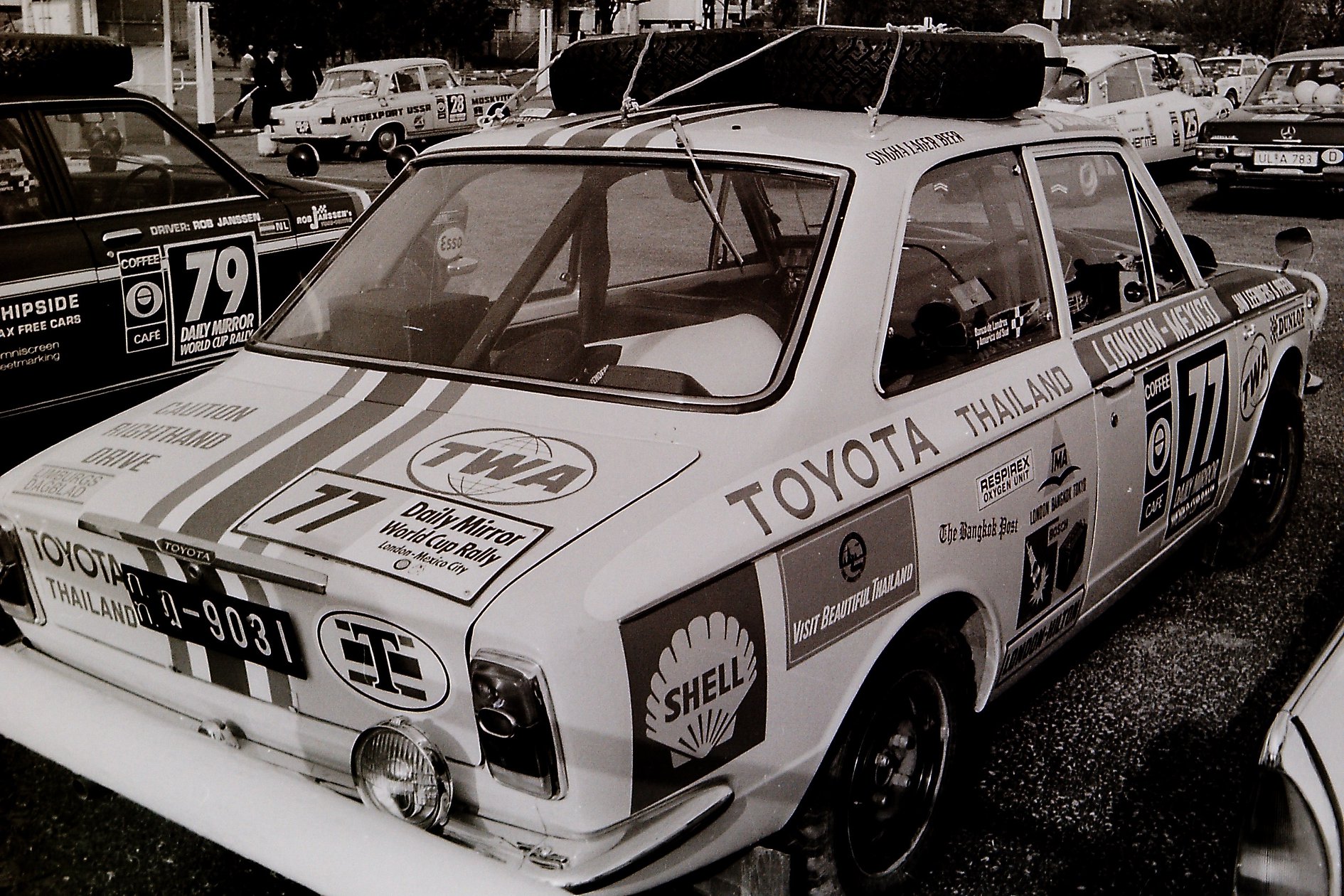 Ford Escort car 105 reg number WGT 977G in the 1970 World Cup Rally