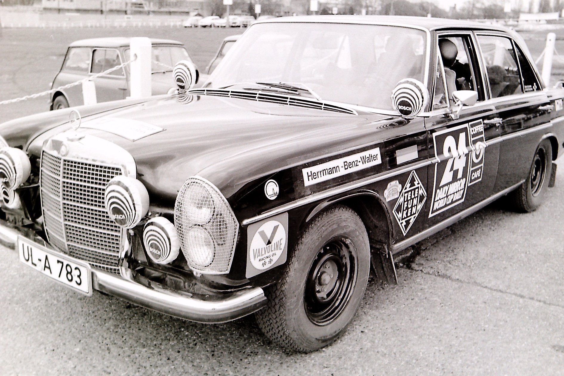 Mercedes Benz 280SE car 24 in 1970 World Cup Rally