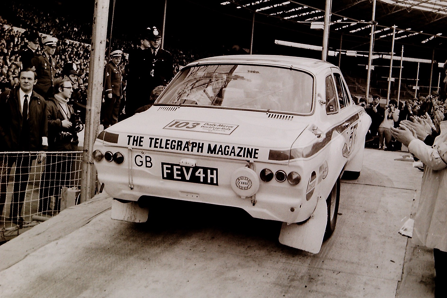 Ford Escort car 103 reg number FEV 4H in the 1970 World Cup Rally