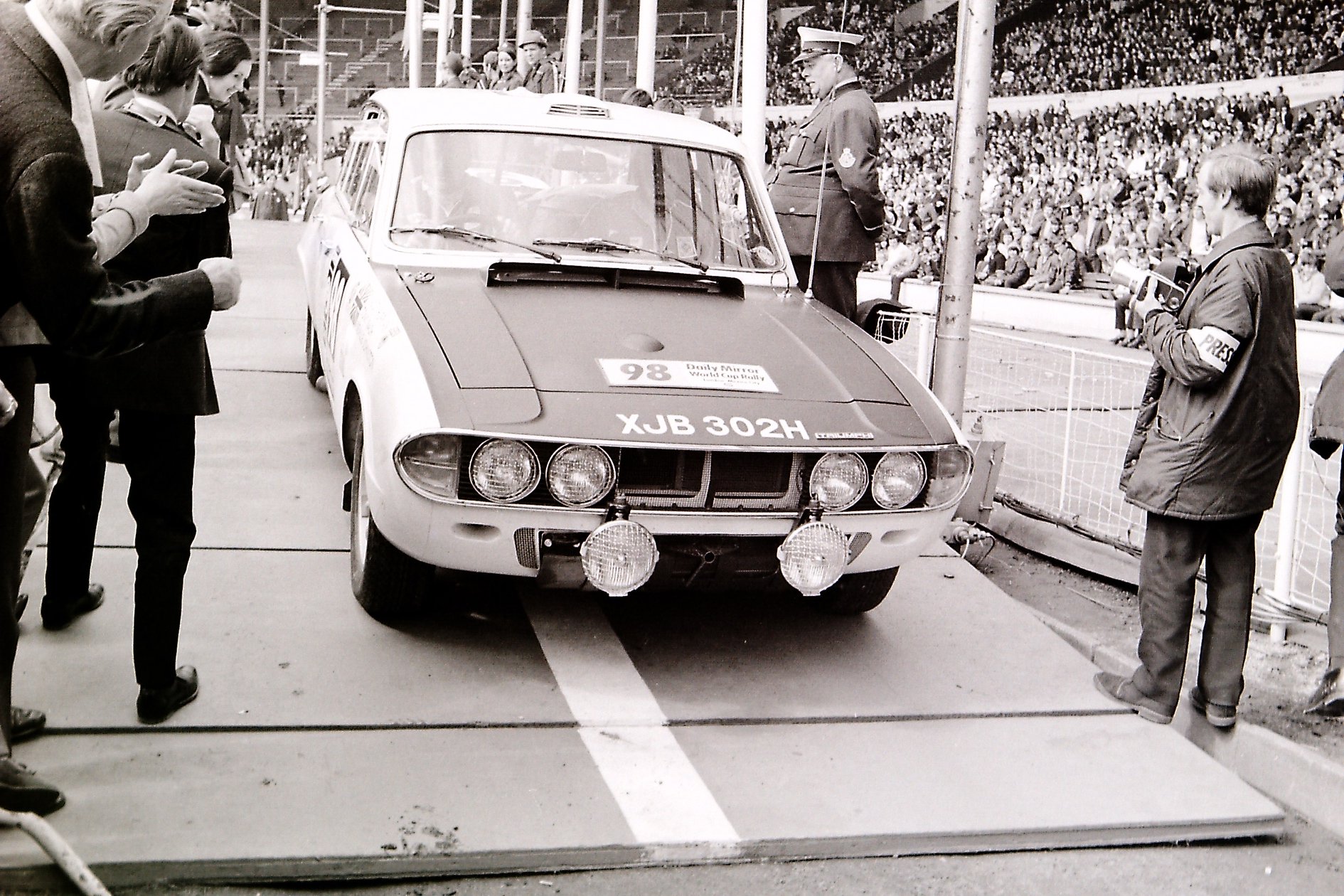 Triumph 2.5PI car 98 reg number XJB 302H at start of the 1970 World Cup Rally