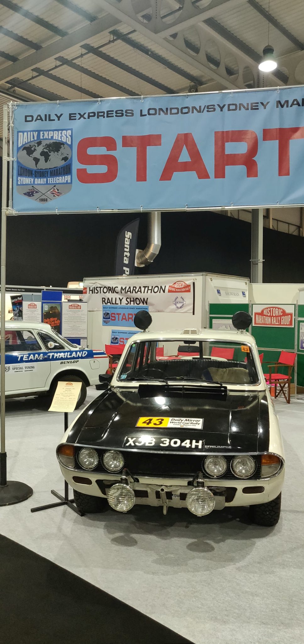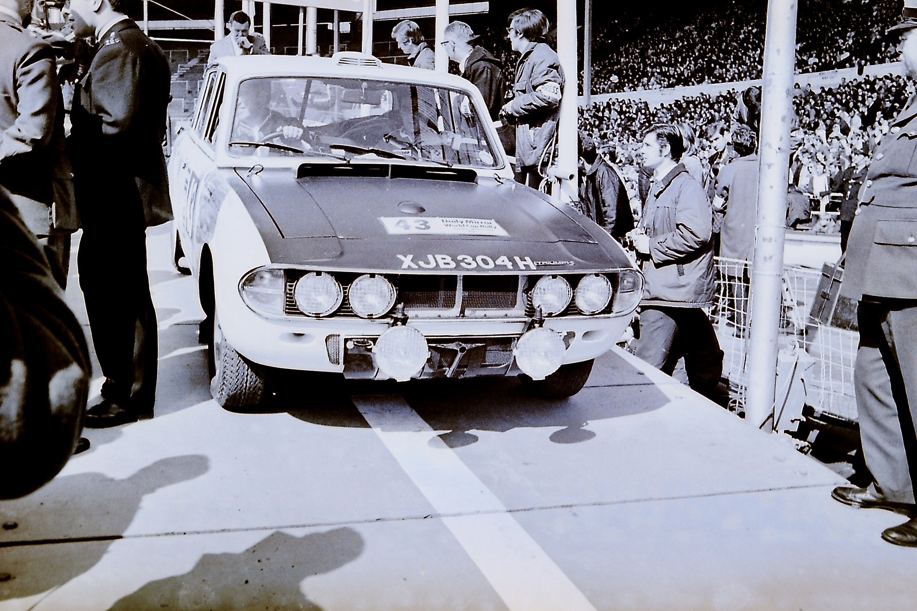Triumph 2.5PI car 43 reg number XJB 304H at start of the 1970 World Cup Rally