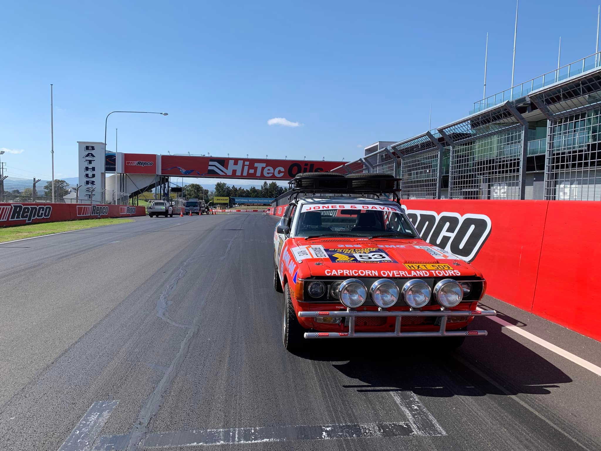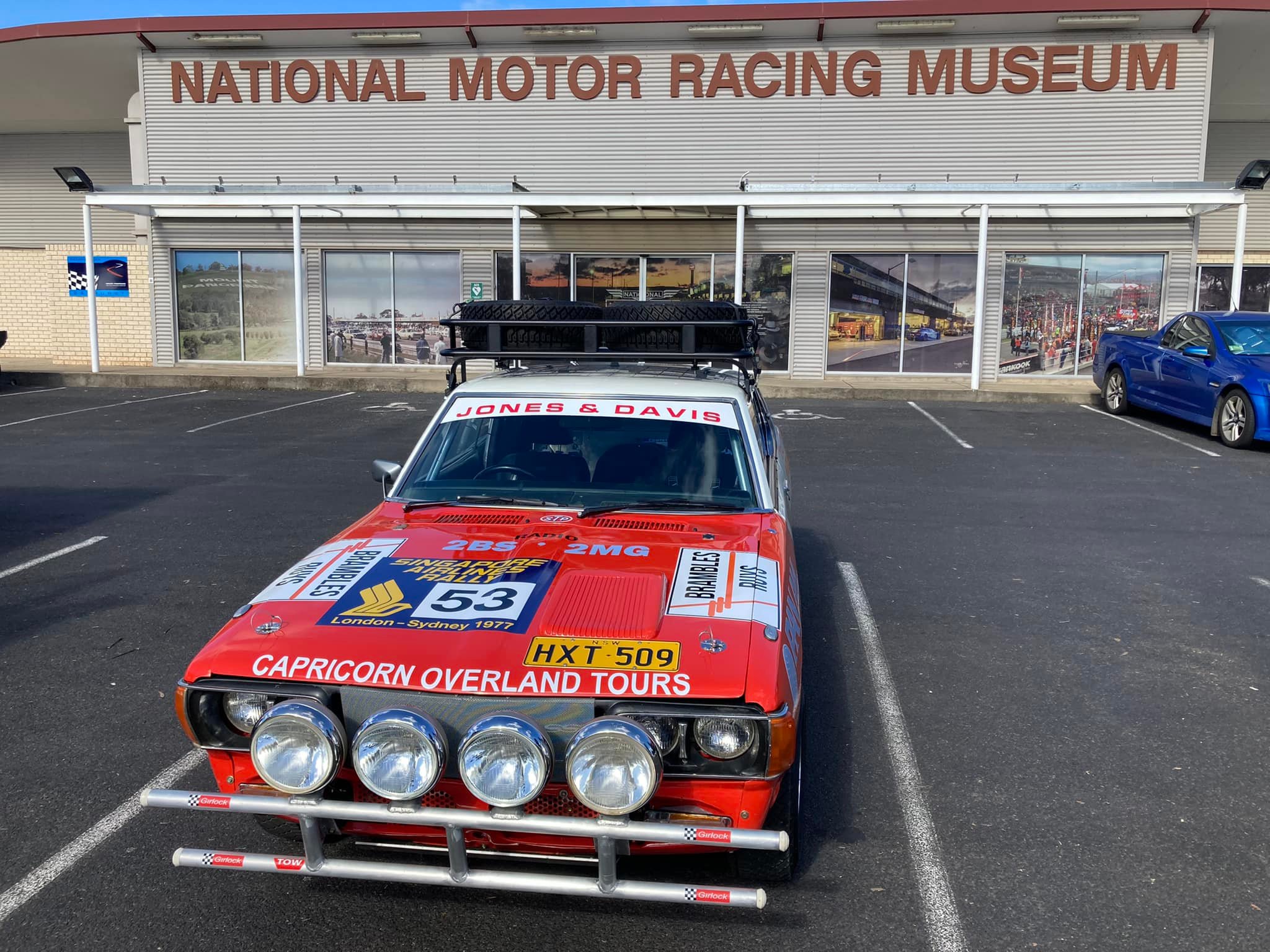 The car which was crewed by Jones/Davis/Latham during the 1977 London to Sydney is seen here on track. Later it went on display in the National Motor Racing Museum in Australia.