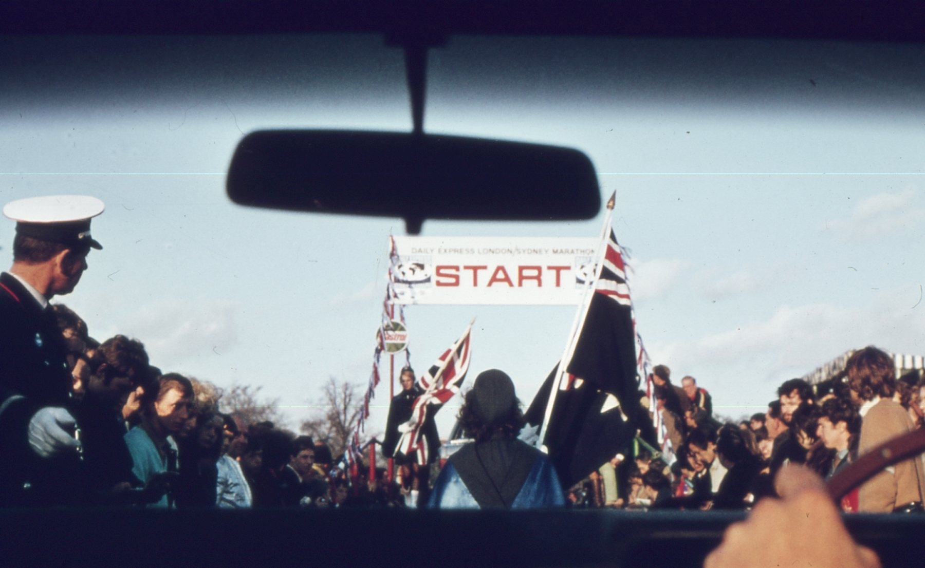 View from Ford Falcon car 97 at the start of the 1968 London to Sydney Marathon Rally – Crystal Palace London