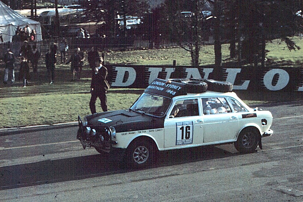 BMC 1800 at start of 1968 London to Sydney Marathon Rally, Crystal Palce London. Car is now owned by Ted Taylor.