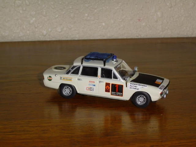 Corgi model of Morris 1800 Mk2. This car took part in the 1970 World Cup Rally it came 2nd in Ladies’ Prize, 18th overall. Jean Denton, Pat Wright, Liz Crellin. ‘The Beauty Box’.