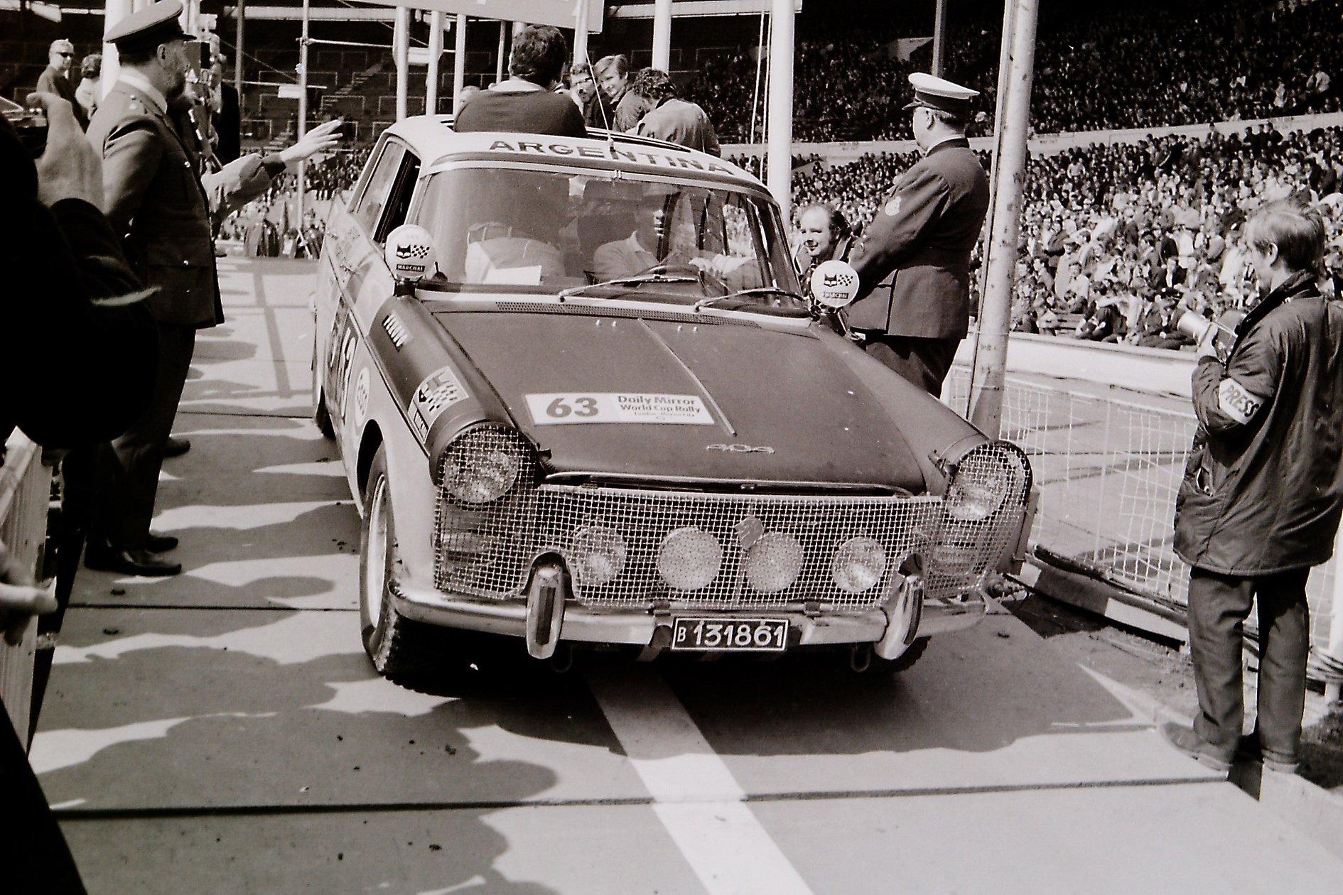 Peugeot 404, car 63 at the start of the World Cup Rally 1970