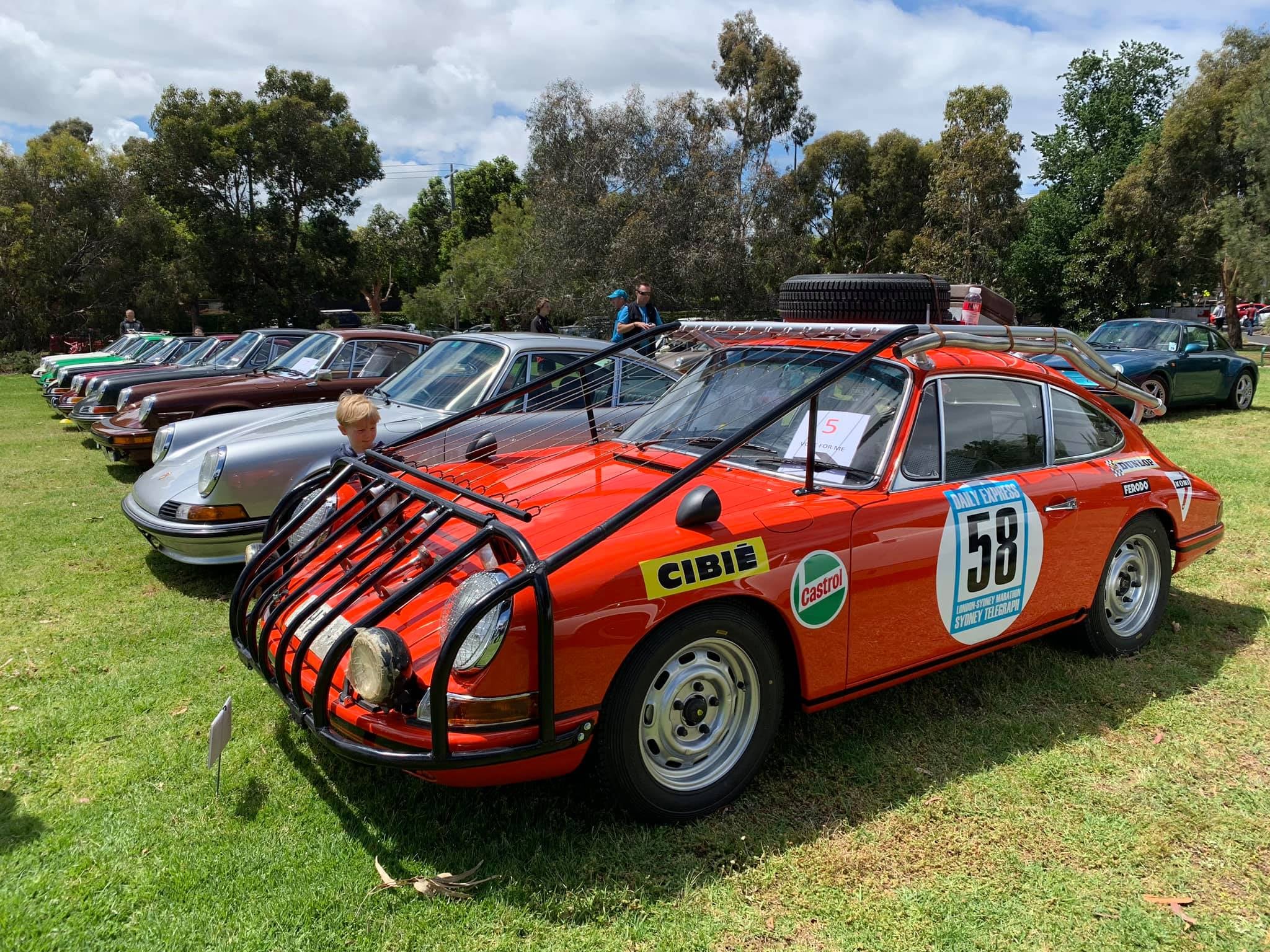Porsche 911S car 58 from the 1968 London to Sydney Marathon Rally at a show