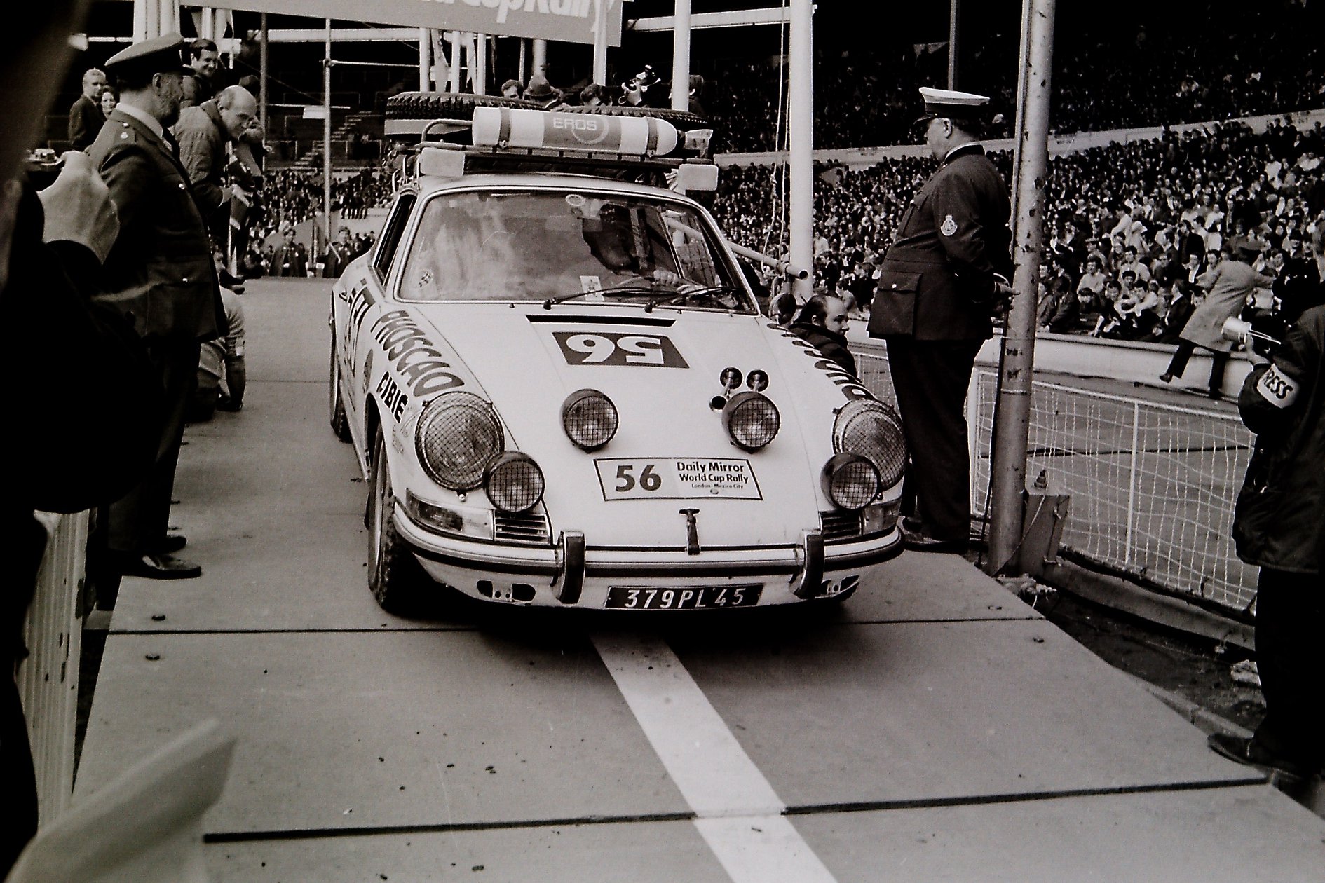 Porsche 911S car 56 at the start of the 1970 World Cup Rally