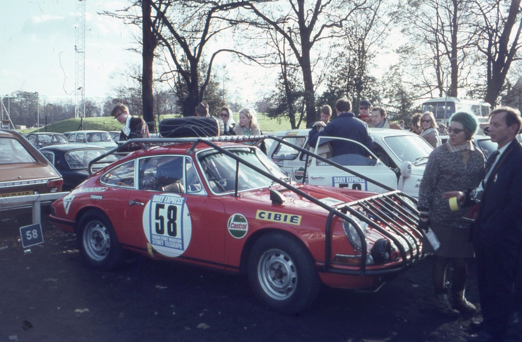 Porsche 911S car 58 at the start of the 1968 London to Sydney Marathon Rally