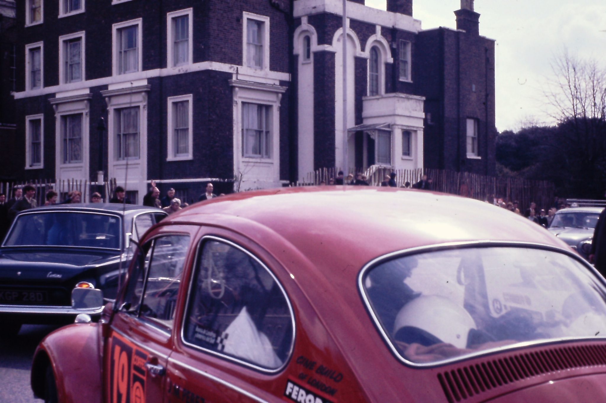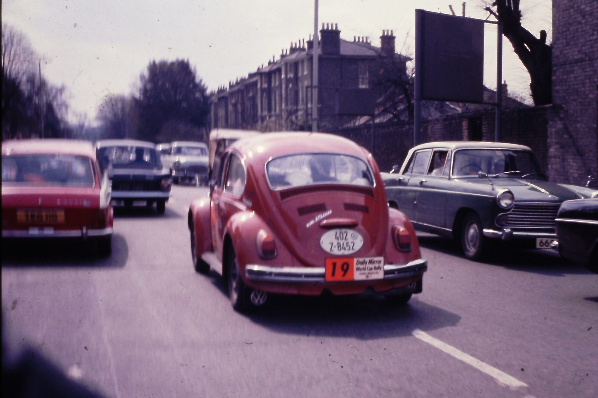 Volkswagon Beetle underway in the 1970 World Cup Rally