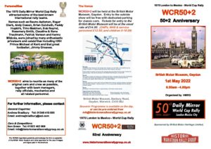 If you would like a WCR50+2 London – Mexico City sticker you can buy at any of the events or shows we attend each year for only £1.50, we also have a limited supply of WCR 50 pin badges, 2018 London – Sydney Marathon plaques, replica rally plates and more available at our stand.